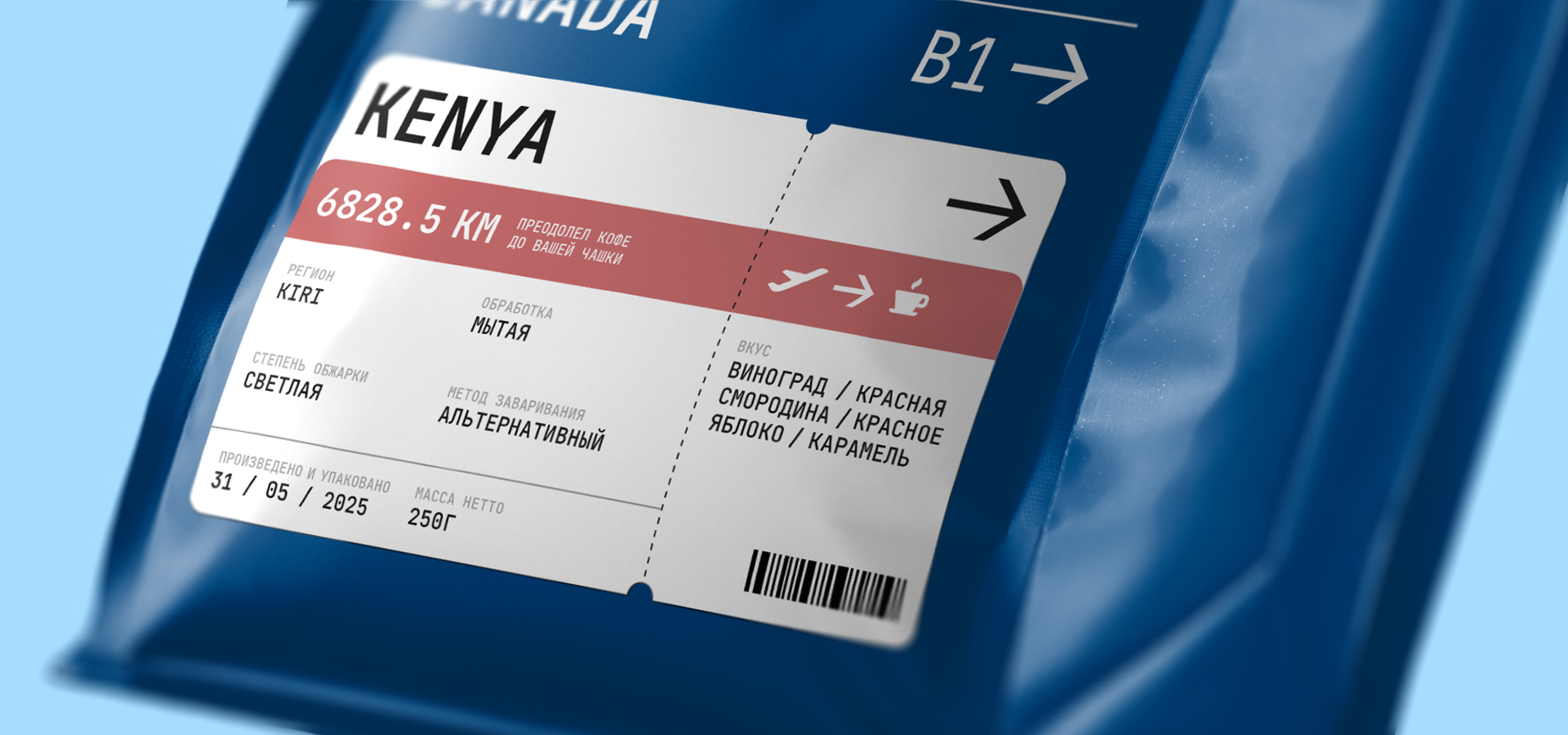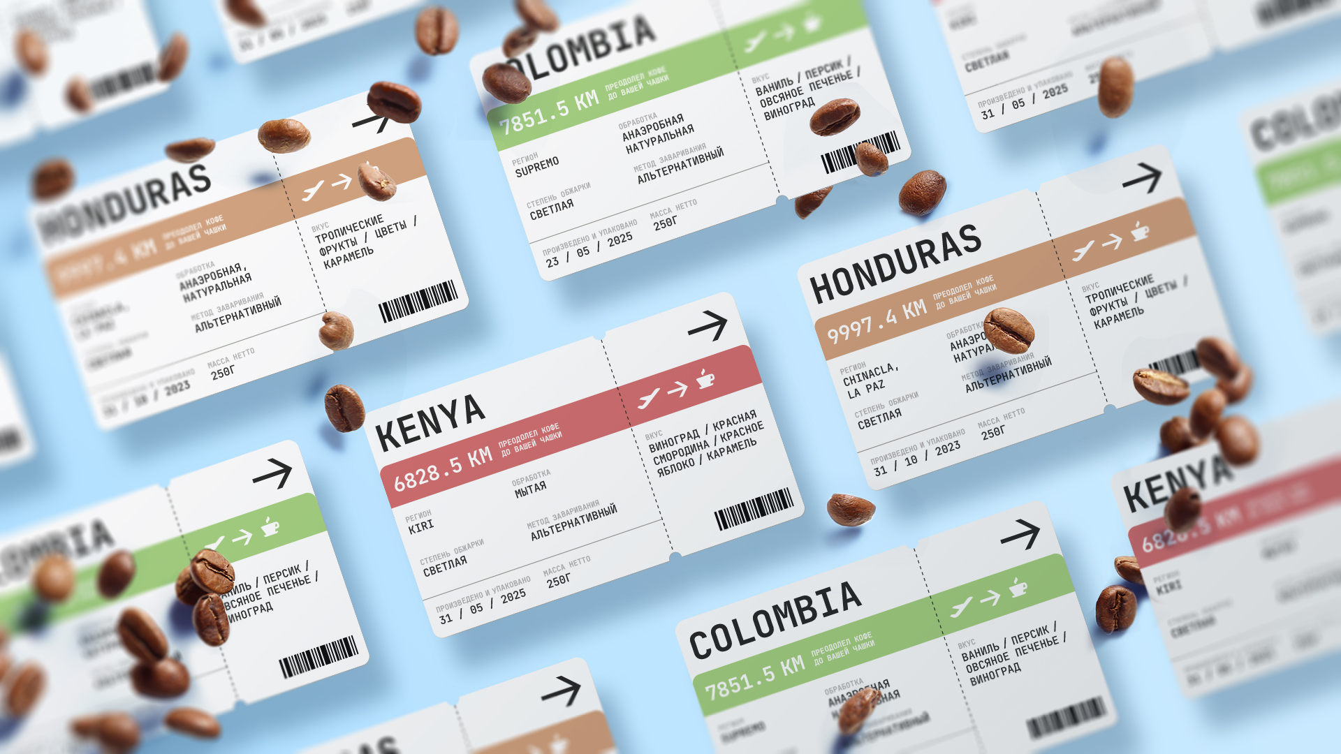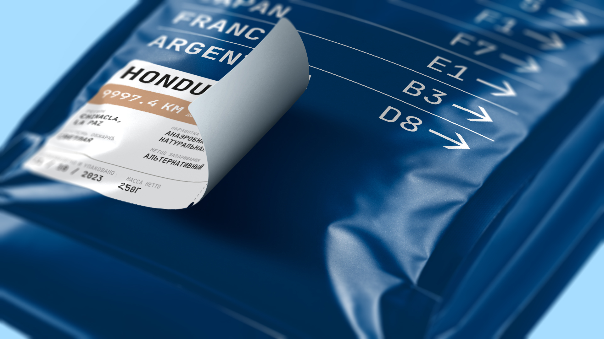 Having initially taken the idea of travel as a basis, we were faced with the question of choosing a visual metaphor for such a popular topic in the coffee category. As a result, we identified the brand as an airport where coffee drinkers receive tickets for a personal trip based on tastes and aromas. The graphics are based on the aesthetics of the flight display, where there is always a suitable one for us among the many options. And to solve the problem with easy scaling, we made branded stickers on the packaging in the form of airline tickets. It’s like we’re sending customers on a flight for new experiences, and at the same time we’re helping customers adapt every taste into a single sticker template.